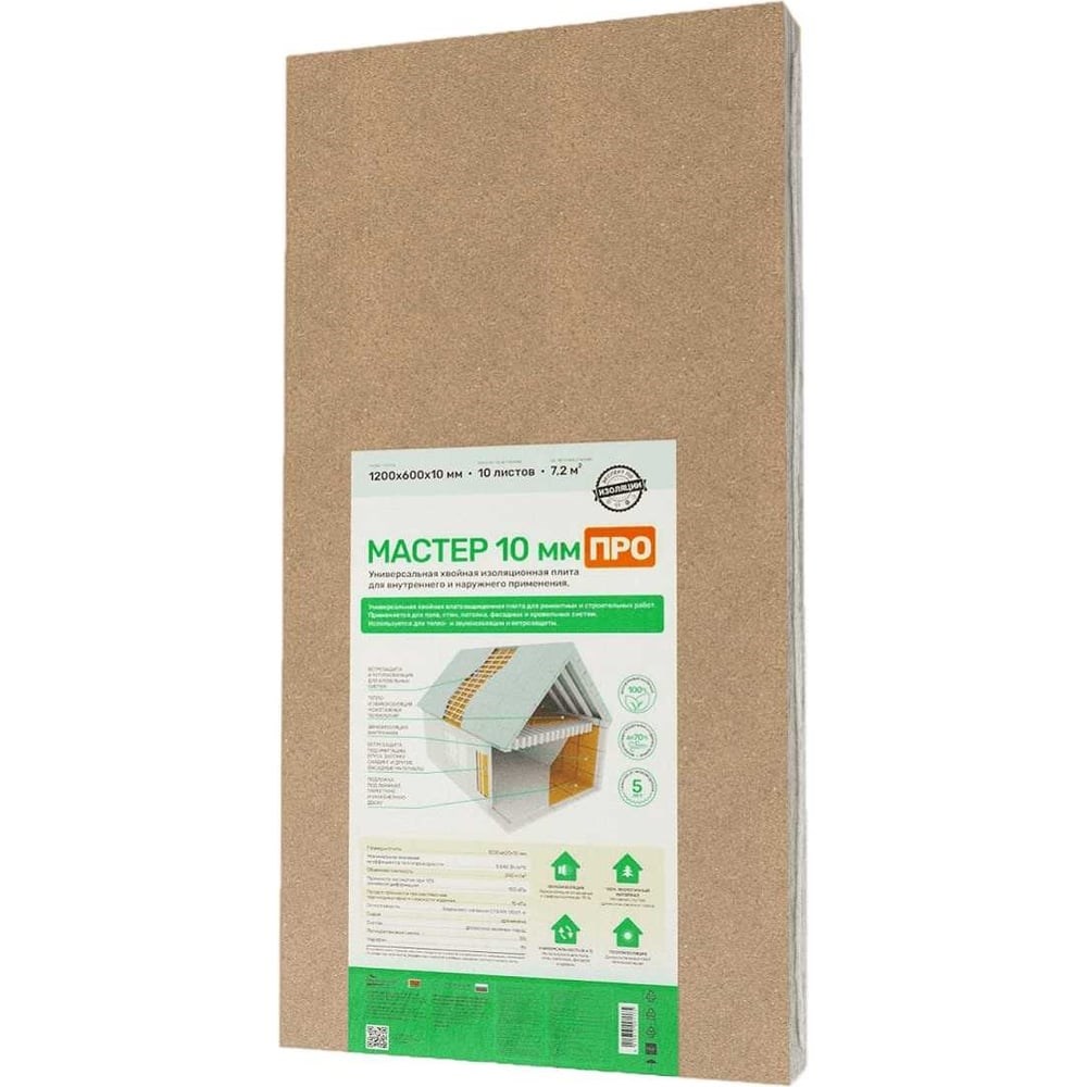 Хвойная изоляция ЖивиТеплее Мастер ПРО - универсальная хвойная изоляционная плита для внутреннего и наружного применения. Рекомендуется для теплоизоляции и ветрозащиты кровли и стен под финишным покрытием, а также для звукоизоляции помещений в любых жилых строениях для постоянного проживания как частных домов, так и домов для коммерческого использования, детских садов и т.п.