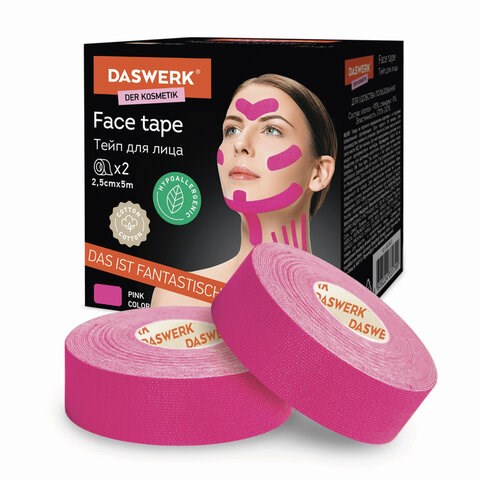 Кинезиотейп / лента для лица, лифтинг эффект, 2,5 см х 5 м, КОМПЛЕКТ, 2 рулона, розовый, DASWERK (ДАСВЕРК), 680013