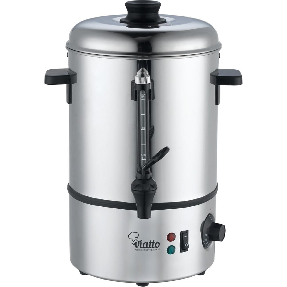 Электрокипятильник Viatto VA-WB08SS 157823 предназначен для нагрева и кипячения воды, а также поддержания её в горячем состоянии. Оснащён терморегулятором, закрытым ТЭНом и одинарными стенками. Есть мерное стекло, позволяющее отслеживать уровень воды. Благодаря удобным ручкам оборудование можно легко переносить. Корпус изготовлен из нержавеющей стали. Рекомендуется к применению в кафе, столовых, фаст-фуд заведениях и на других предприятиях общественного питания малого и среднего форматов.