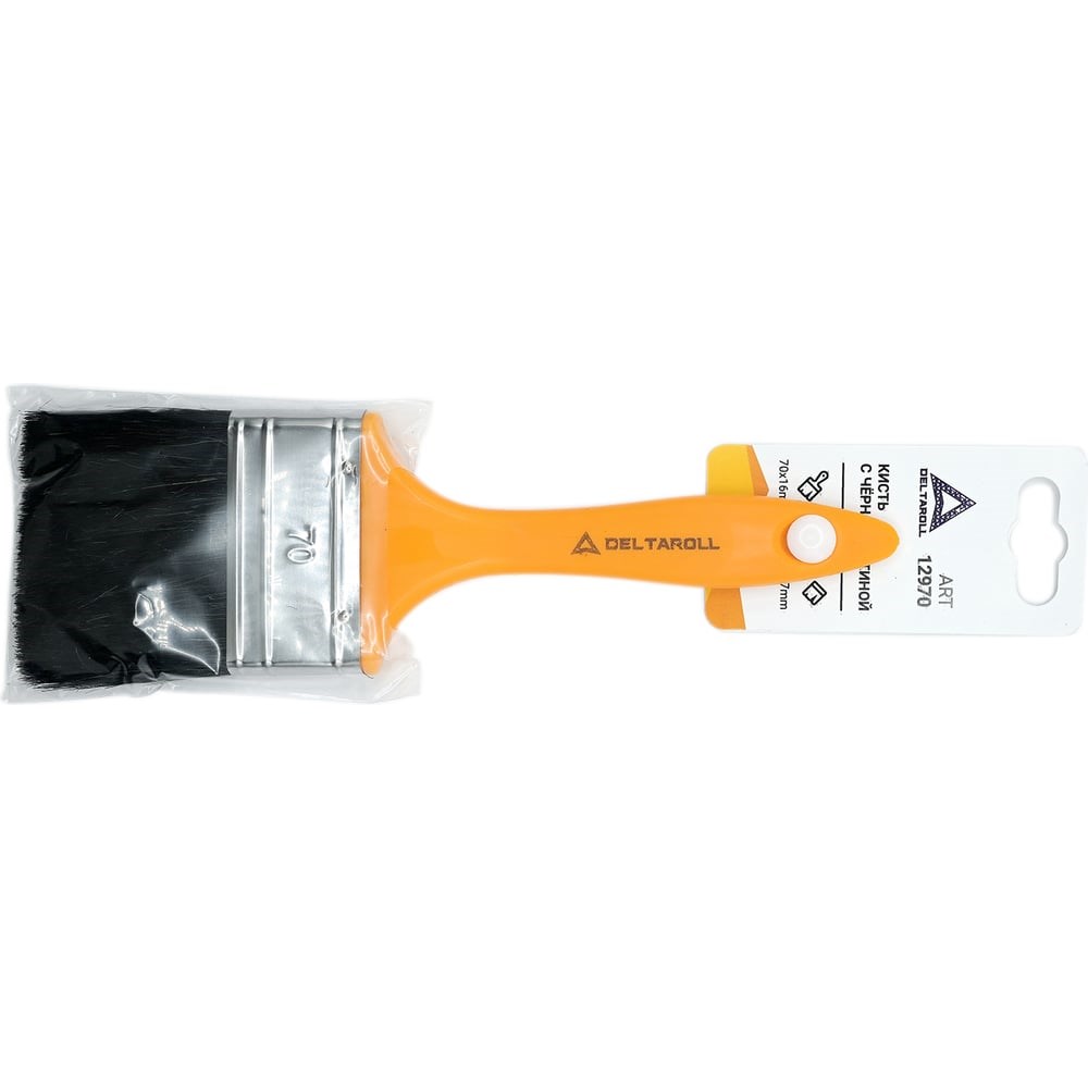 DeltaRoll Кисть с желтой ручкой, черная щетина, 70x16 мм, 12970 предназначена для нанесения всех типов эмалей и лаков на деревянные, металлические и другие типы поверхностей. Наличие металлического бандажа обеспечивает надежное удержание щетины даже при окрашивании с большим усилием.