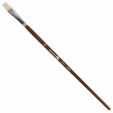 Кисть художественная профессиональная BRAUBERG ART CLASSIC, щетина, плоская, № 10, длинная ручка, 200717