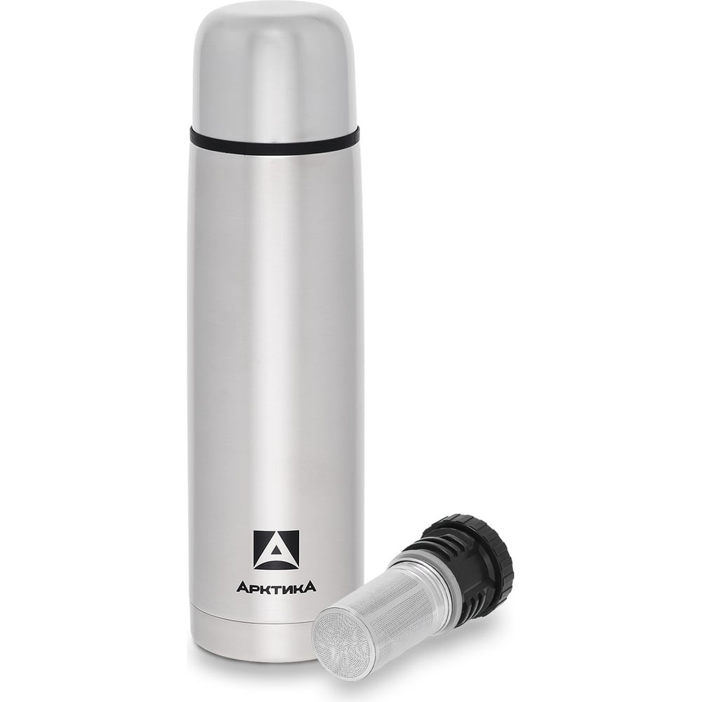 Классический термос для напитков Арктика с узким горлом и глухой пробкой, со съемным ситечком, объем 1 л 101-1000С