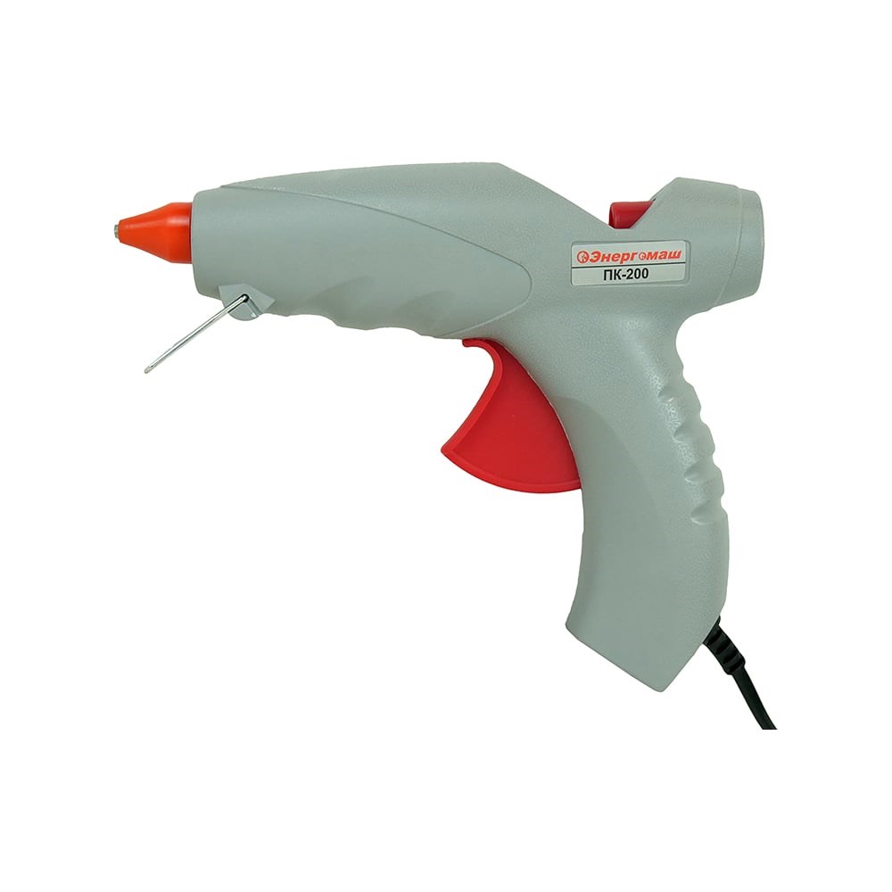 Клеевой пистолет Энергомаш 200 Вт ПК-200 обеспечивает аккуратные результаты нанесения клея и быструю фиксацию изделий. Хорошо склеивает пластмассу, бумагу, картон, искусственную кожу и т.д. Предусмотрена упрочненная упорная направляющая муфта, которая защищает от попадания нагретого клея назад в прибор. Для более удобного использования подставка фиксируется в двух положениях.