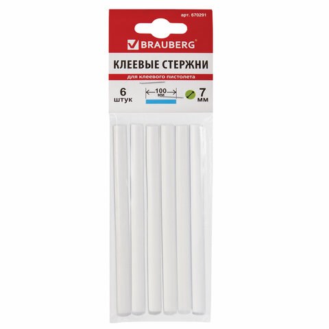 Клеевые стержни, диаметр 7 мм, длина 100 мм, прозрачные, комплект 6 шт., BRAUBERG, европодвес, 670291