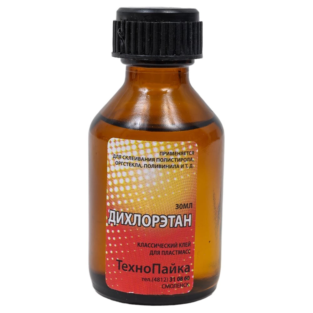 Клей для оргстекла ZeepDeep дихлорэтан ДХЭ, флакон-стекло 30 мл 602162 предназначен для склеивания корпусных поверхностей из пластмассы (изделия из оргстекла, полистирола или полиметилметакрилата (ПММА)), для использования в производстве в качестве растворителя (в составе красок, средств для снятия лака, полирующих средств), а также как средство для обезжиривания различных материалов (растворяет жиры, воск, смолы, входит в состав пятновыводителей). Продукт представляет собой бесцветную легковоспламеняющуюся жидкость со сладковатым запахом (похожим на запах хлороформа) и практически не растворяется в воде. Перед склеиванием необходимо из стружек оргстекла (от 2 до 3%), или полистирола (от 8 до 12%) и небольшого количества дихлорэтана сделать клейкую массу (смешивая до консистенции сметаны). Далее нанести тонким слоем на обе обезжиренные поверхности, плотно прижать друг к другу и зафиксировать. Время склеивания от 30 минут до 10 часов (зависит от площади склеиваемых материалов).