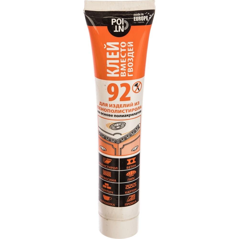 Клей вместо гвоздей POINT 92, для пенополистирола, в шоу-боксе, 80 мл 03-1-0-192 используют во время монтажных и отделочных работ для приклеивания изделий из легких материалов (пенополистирол, картон, пробка, древесина). Состав не содержит растворителей и обеспечивает высокую липкость к пористым основаниям: бетону, кирпичу, гипсу, штукатурке, древесине. Продукт применяют внутри и снаружи помещений при температуре от +15ºC до +30ºC. Эластичный клеевой шов обладает быстрым и сильным начальным схватыванием, не сползает при вертикальном нанесении и обеспечивает надежную фиксацию элементов.