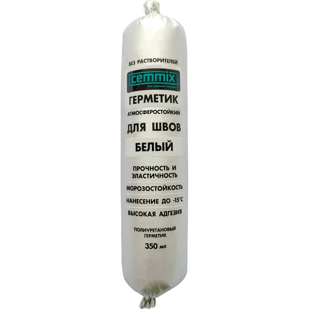 Клей-герметик для швов CEMMIX - однокомпонентный полиуретановый герметик для герметизации различных швов, примыканий ступеней и стен, ввода труб и систем вентиляции и жестко-эластичной склейки различных материалов шириной до 20 мм, в том числе подвергающихся постоянному воздействию воды и вибрации. Герметизация и приклеивание закладных и монтажных элементов на конструкции кровли (водосточные воронки, аэраторы, карнизы и пр.). Применение: для гидроизоляции и герметизации при кровельных, плотничных, слесарных работах; для герметизации монтажных соединений санитарно-технических изделий; заполнение и герметизация деформационных швов в промышленных полах и других вертикальных, горизонтальных и потолочных швах; герметизация швов сэндвич-панелей; для герметизации мест прохода инженерных коммуникаций через различные строительные конструкции (в т.ч. подверженных вибрации); укладка керамической черепицы; для внутренних и наружных работ.