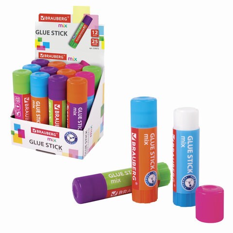 Клей-карандаш BRAUBERG MIX, 25 г, PVP основа, 229073