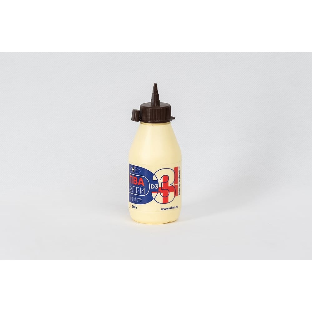 Однокомпонентный водостойкий клей для дерева на основе водной дисперсии модифицированного ПВА. Предназначен для склеивания массива из твердых и мягких пород древесины в холодных и горячих прессах, установках ТВЧ – высокочастотное склеивание; для сращивания древесины на шип, для каширования шпоном и ламинатом; для монтажного склеивания конструкций из древесины, устойчивых к воздействию повышенной влажности и/или частому кратковременному воздействию конденсата. Показатель концентрации водородных ионов (рН) 3,5 - 4,0; Вязкость 9 000 — 15 000 мПа*с (Brookfield, 23°C); Содержание сухого вещества не менее 46%; Клеящая способность, не менее 10 H/мм²; Открытое время 8 — 14 мин. в зависимости от температуры в рабочем помещении. Не рекомендуем проводить работы с клеем при температуре ниже 15°C. Минимальное время прессования при температуре 18-20°C — 10-15 мин. Перед любым использованием клей необходимо перемешать. Склеиваемые поверхности очистить от грязи. Деревянные поверхности обработать наждачной бумагой. Клей нанести тонким слоем на обе поверхности, поверхности прижать друг к другу грузом, струбциной или иным способом, выдержать прижатыми в течение суток при комнатной температуре. При склеивании бумаги выдержка под грузом не требуется. Пожаро-взрывобезопасен. Нетоксичен. Все работы с клеем производить в резиновых перчатках. Хранить при температуре от +5°С до +30°С. Срок годности: 3 года при соблюдении условий хранения. Состав: водная дисперсия модифицированного поливинилацетата.