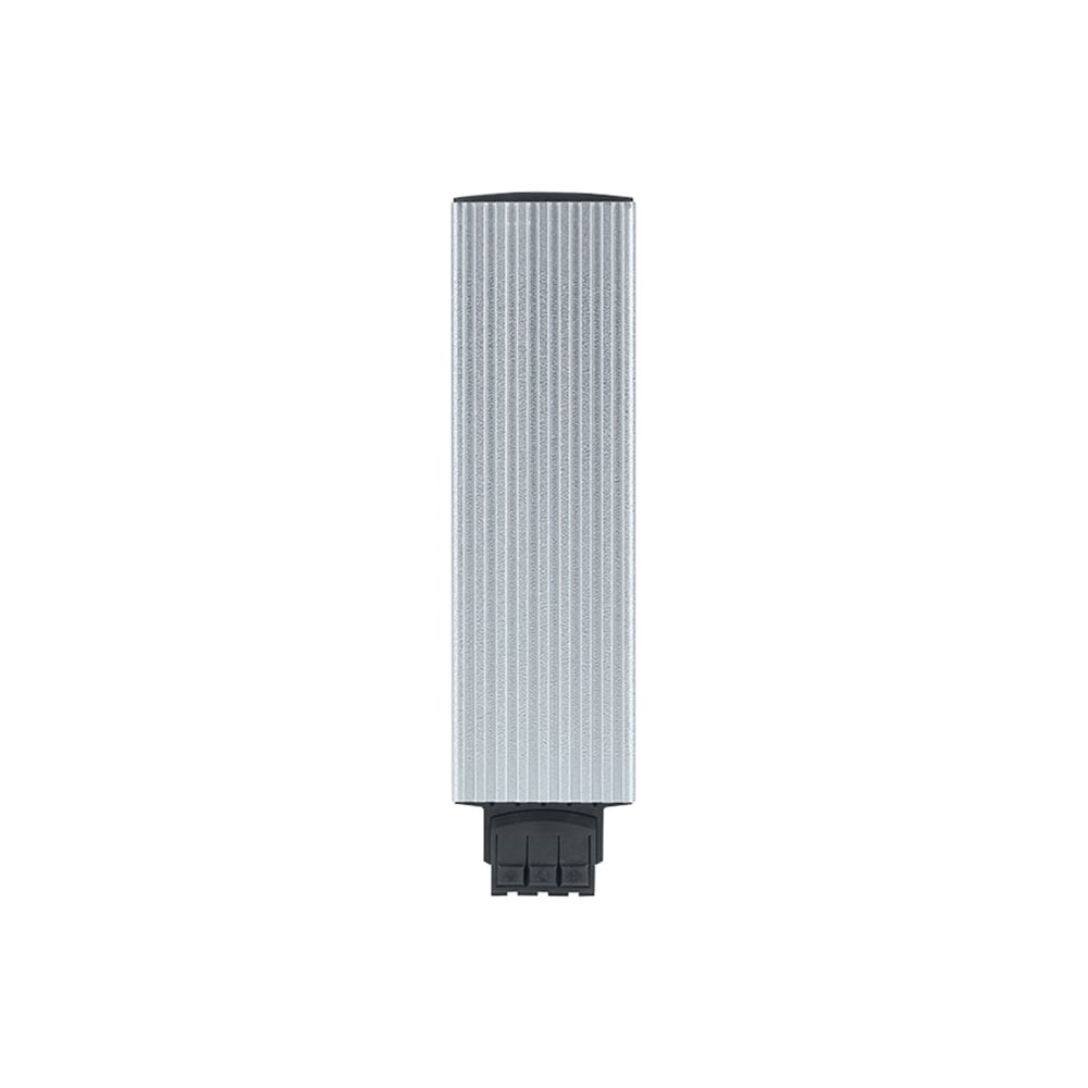 Обогреватель на DIN-рейку IP20 EKF PROxima предназначен для обогрева электрооборудования в электротехнических шкафах. Предотвращает образование конденсата, появление коррозии и падение температуры ниже минимального значения. Защищает от замерзания электронные компоненты. Предназначен для длительного режима работы. Конструкция алюминиевого профиля обеспечивает естественную конвекцию воздуха, благодаря чему достигается равномерное распределение температуры.Используемый нагревательный элемент позистор (PTC) не требует защиты от перегрева нагревателя, но не заменяет применение термостата для регулирования температуры воздуха. Термостат приобретается отдельно. Установка прибора на DIN-рейку в вертикальном положении. Для обеспечения свободной циркуляции воздуха необходим зазор между радиатором нагревателя и установленным оборудованием или проводкой не менее 50 мм.