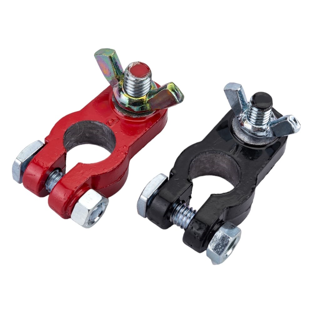 Клеммы General Technologies АКБ под болт с барашком 2 шт "+" "-" Тип EURO /свинец/ GT-M040015 положительная и отрицательная. Тип клемм EURO Type 1. Тип покрытия - лакокрасочное. Крепление под болт с барашком.