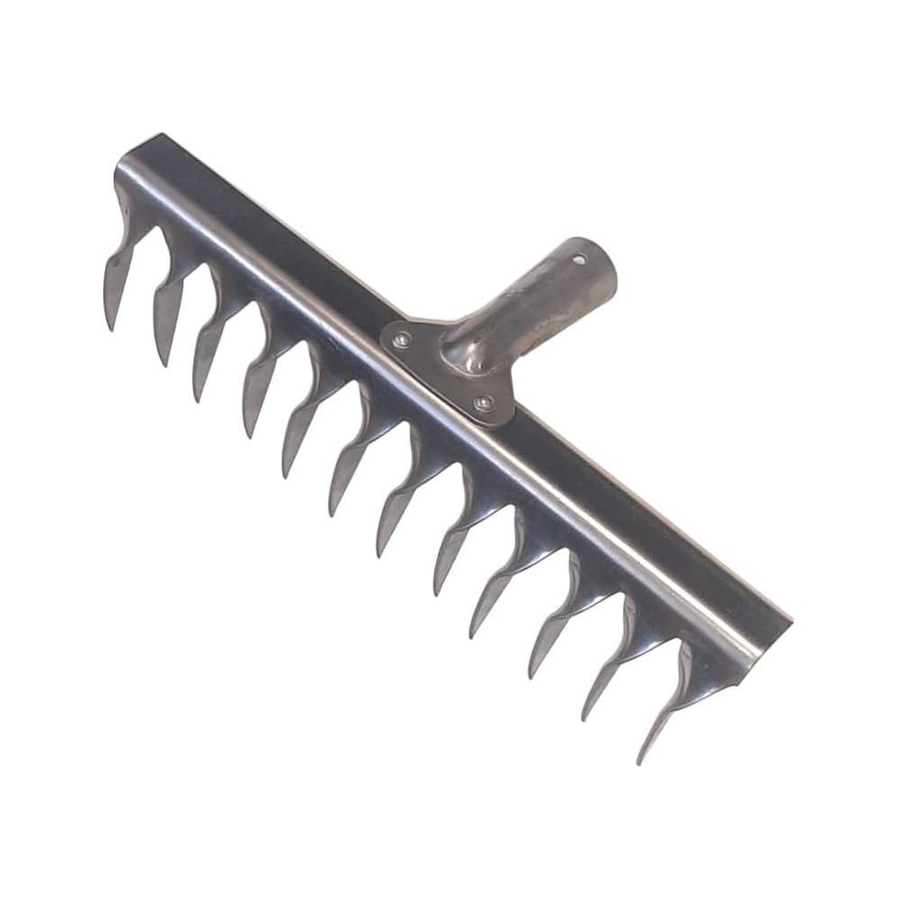 Грабли клепанные витые ГК 12-ти зубцовые от производителя ООО “ПК Тандем-АГРО”, без черенка - надежный инструмент для садоводов и огородников. Крепление тулейки граблей - на заклепках.Подойдут для обработки посадок в контейнерах, маленьких узких грядок, клумб.Грабли с витыми зубцами подходят для уборки мусора, листьев и скошенной сухой травы с полутвердой и твёрдой поверхности. Можно использовать для рыхления и аэрации почвы на грядках и клумбах.Металлическая рабочая часть изготовлена из прочной нержавеющей стали, толщиной 2,0мм., из прочного и долговечного материала, который обладает высокой устойчивостью к коррозии и механическим повреждениям, толщина металла 2,0мм. При желании грабли можно комплектовать соответствующим черенком, черенок должен быть Ф30 с узким конусом.Данная позиция поставляется без черенка. Количество зубьев 12.