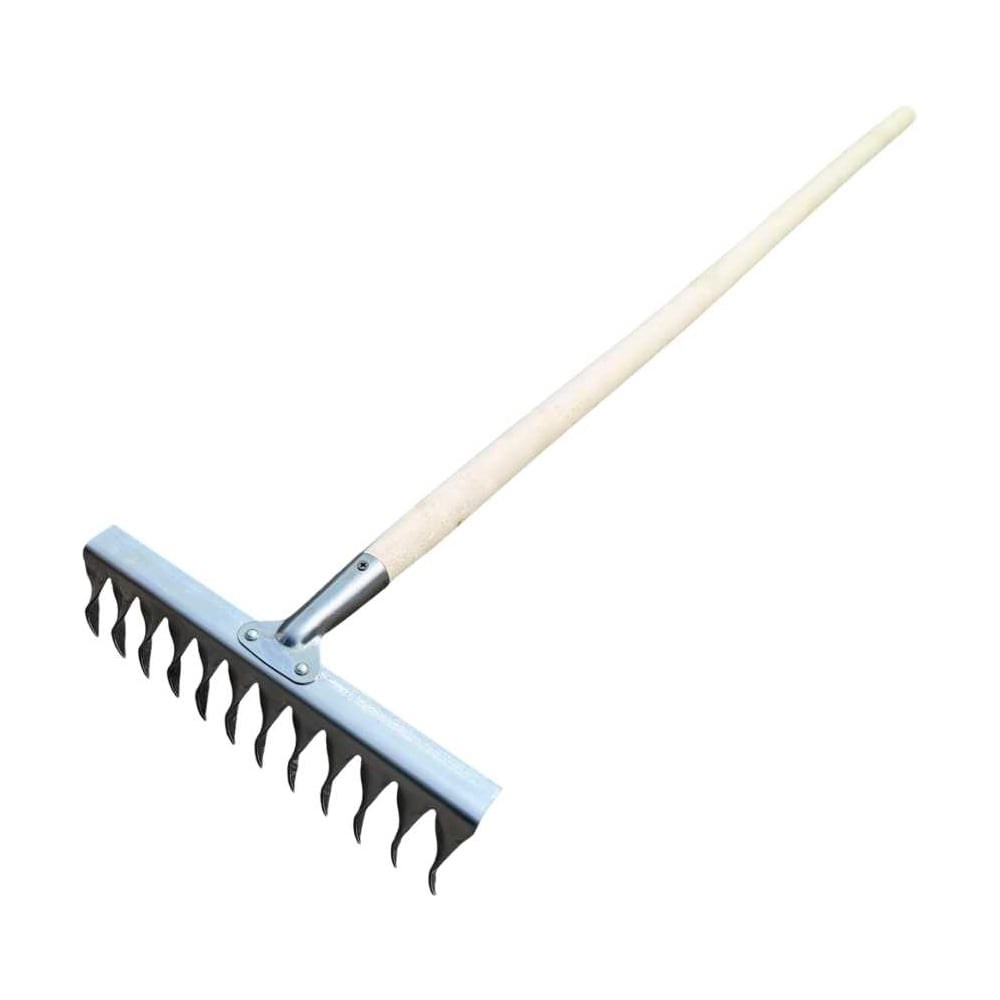 Грабли клепанные витые ГК 12-ти зубцовые от производителя ООО “ПК Тандем-АГРО” - надежный инструмент для садоводов и огородников. Крепление тулейки граблей - на заклепках, с деревянным черенком высшего сорта, длиной 1200мм. Ф 30мм.Подойдут для обработки посадок в контейнерах, маленьких узких грядок, клумб.Грабли с витыми зубцами подходят для уборки мусора, листьев и скошенной сухой травы с полутвердой и твёрдой поверхности. Можно использовать для рыхления и аэрации почвы на грядках и клумбах.Металлическая рабочая часть изготовлена из прочной нержавеющей стали, толщиной 2,0мм., из прочного и долговечного материала, который обладает высокой устойчивостью к коррозии и механическим повреждениям, толщина металла 2,0ммДанная позиция поставляется с деревянным черенком высшего сорта Ф 30мм., длиной 1200мм. Количество зубьев 12.