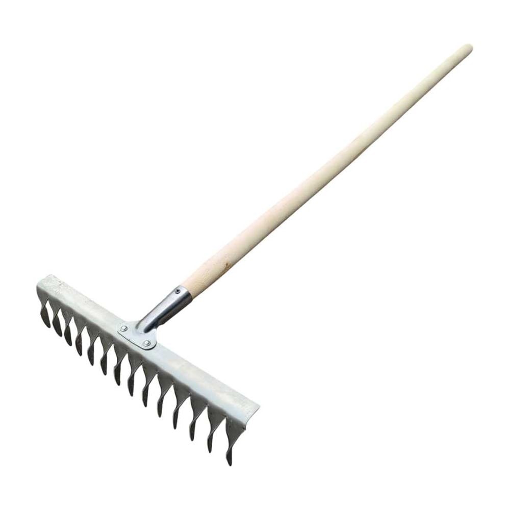 Грабли клепанные витые ГК 14-ти зубцовые от производителя ООО “ПК Тандем-АГРО” - надежный инструмент для садоводов и огородников. Крепление тулейки граблей - на заклепках, с деревянным черенком высшего сорта, длиной 1200мм. Ф 30мм.Грабли с витыми зубцами подходят для уборки мусора, листьев и скошенной сухой травы с полутвердой и твёрдой поверхности. Можно использовать для рыхления и аэрации почвы на грядках и клумбах.Металлическая рабочая часть изготовлена из прочной нержавеющей стали, толщиной 2,0мм., из прочного и долговечного материала, который обладает высокой устойчивостью к коррозии и механическим повреждениям, толщина металла 2,0ммДанная позиция поставляется с деревянным черенком высшего сорта Ф 30мм., длиной 1200мм. Количество зубьев 14.