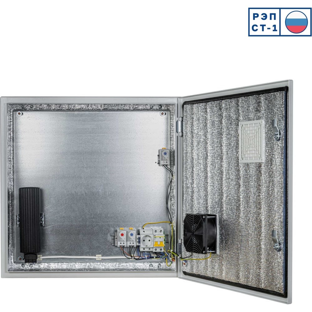 Климатический навесной шкаф Mastermann4УТПВ-А (Ver. 2.0) 00-00016761 с активной вентиляцией предназначен для монтажа электронного оборудования, требующего защиты от воздействия низких температур, пыли, влаги, атмосферных осадков, нежелательного доступа и других неблагоприятных факторов.Цельносварной корпус из 2 мм стали марки Ст3. Покраска порошковая в цвет ral 7035 (серый).Термошкаф оснащен системой автоматического поддержания заданной температуры и относительной влажности, обеспечивающей безопасную работу размещенного в нём оборудования при температуре окружающего воздуха от -55°С до +50°С со степенью защиты IP54.