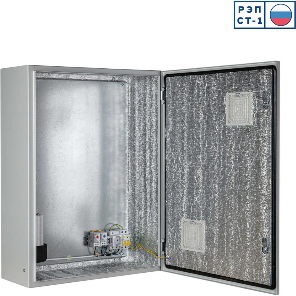 Климатический металлический навесной шкаф Mastermann-5УТПВ-П (Ver. 2.0) с пассивной вентиляцией предназначен для монтажа электронного оборудования, требующего защиты от воздействия низких температур, пыли, влаги, атмосферных осадков, нежелательного доступа и других неблагоприятных факторов.Цельносварной корпус из 2 мм стали марки Ст3. Покраска порошковая в цвет ral 7035 (серый).Термошкаф оснащен системой автоматического поддержания заданной температуры и относительной влажности, обеспечивающей безопасную работу размещенного в нём оборудования при температуре окружающего воздуха от -55°С до +50°С со степенью защиты IP54.Габаритные размеры без гермовводов (ШхВхГ) 600х800х250 ммВнутренние габариты с учетом теплоизоляции и монтажной панели (ШхВхГ) 577х777х220 ммПродукция Mastermann сертифицирована формой СТ-1Шкаф выпускается по техническим условиям ТУ 4372-002-62942652-2016. По способу защиты человека от поражения электрическим током шкаф соответствует классу I по ГОСТ 12.2.007.0. Климатическое исполнение шкафа соответствует ГОСТ 15150-69 2.