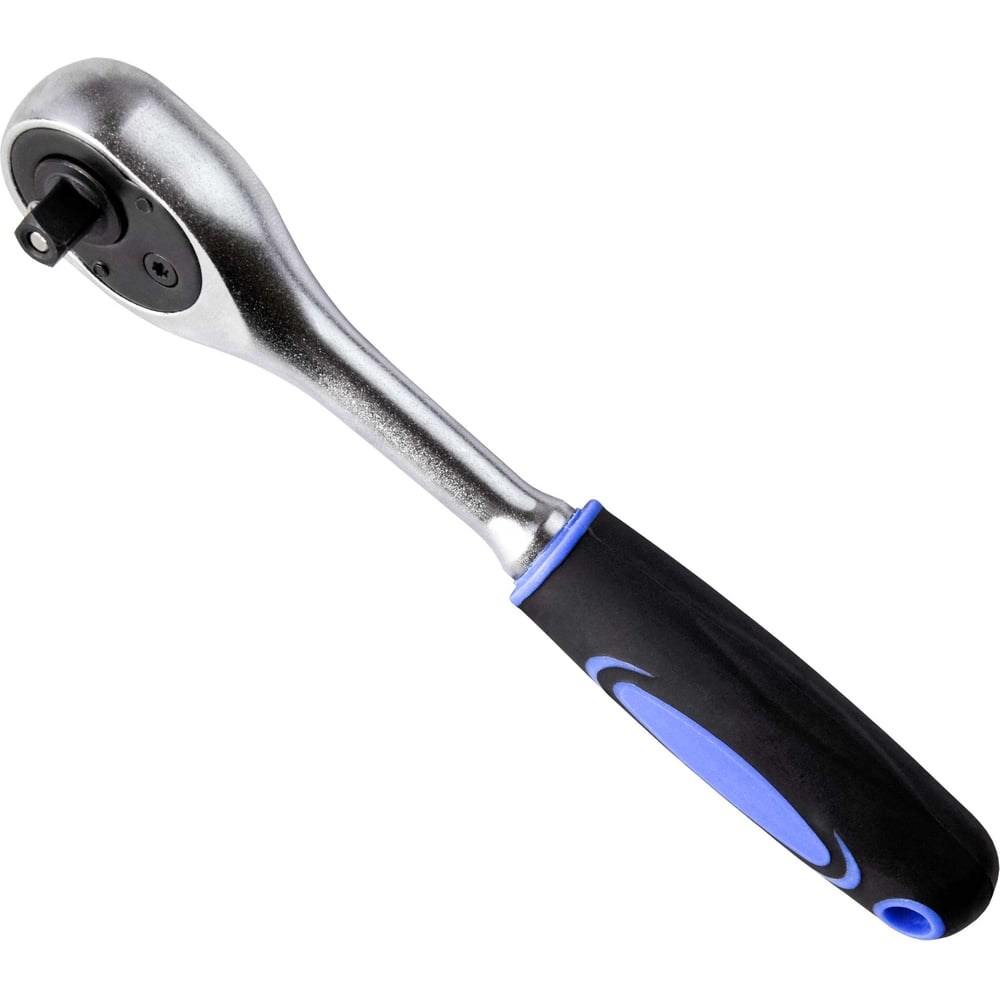 Произведена компанией БелАК, награжденной девятью национальными премиями "Автокомпонент года". Применяется при ремонте техники, сборки мебели, во время строительных работ, при обслуживании и ремонте автомобиля, для монтажа и демонтажа резьбовых соединений. Трещотки – это необходимый инструмент для каждого слесаря, монтажника, автолюбителя. Использование трещоток вместо гаечных ключей значительно повышает производительность труда и позволяет эффективно работать в труднодоступных местах. Трещотки серии «ПРОФИ» имеют храповой механизм с 72 зубцами. Такой тип механизма за счет большего количества зубьев позволяет эффективнее работать в узких и труднодоступных местах. Амплитуда движения всего 5 градусов. Благодаря реверсивному флажковому переключателю можно менять направление вращения без перекидывания ключа. Быстросъёмный механизм позволяет легко и быстро менять насадки. Трещотка ключ имеет рукоятку с нескользящим мягким покрытием, которое обеспечивает надежное удержание инструмента в руке. Трещотка для головок «ПРОФИ» изготовлена с помощью специальной технологии ступенчатой закалки «V3», делающей инструмент еще более прочным и твердым.