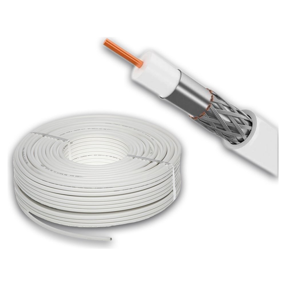 Кабель коаксиальный RG-6U (75 Ом) омедненный применяется для подключения спутниковых и кабельных телевизионных систем, камер видеонаблюдения и устройств, поддерживающих HDTV. Обладает хорошими пропускными показателями и минимальным уровнем потери сигнала. Имеет широкий диапазон рабочих температур. Кабель состоит из омедненной стальной проволоки, находящейся в диэлектрике из вспененного полиэтилена. Поверх диэлектрика наложен экран из алюминиевой фольги, на котором располагается внешний проводник из алюминиевой проволоки в виде оплетки плотностью 48%. Диаметр проволоки в оплетке 0,12-0,15 мм.