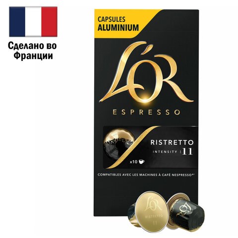 Кофе в алюминиевых капсулах L'OR "Espresso Ristretto" для кофемашин Nespresso, 10 порций, ФРАНЦИЯ, 4028609