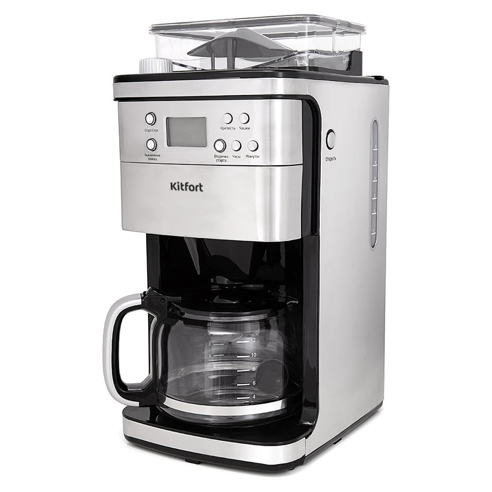 Кофемашина KITFORT КТ-705 готовит ароматный кофе одним нажатием кнопки: автоматически измельчит кофейные зёрна и заварит уже молотый кофе в соответствии с предпочтениями. Таймер отложенного старта позволяет запрограммировать момент включения кофемашины. С вечера залейте в резервуар воду, засыпьте кофейные зерна, установите таймер, а утром, проснувшись, наслаждайтесь ароматом свежезаваренного кофе. Кофемашина оборудована противокапельной системой - затвором, останавливающим подачу кофе при вынимании кофейника из кофемашины.