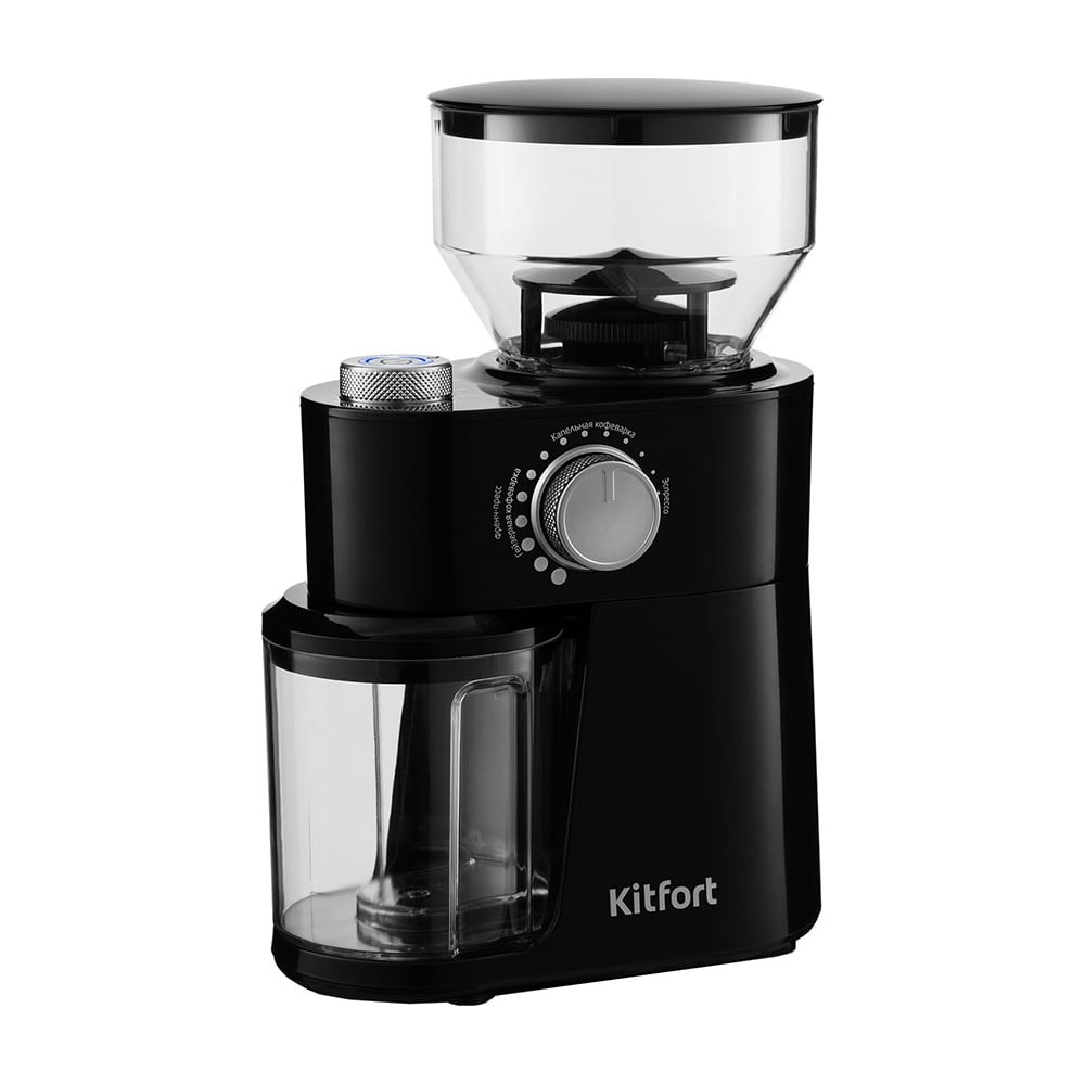 Кофемолка KITFORT КТ-741 предназначена для помола кофейных зёрен. Она оснащена плоскими металлическими жерновами из углеродистой стали. Благодаря чему при помоле кофе не перегревается и не меняет свой вкус. Можно выбрать, какое количество зерен требуется намолоть за один раз. Кофемолка намелет нужное количество и автоматически отключится. Жерновая кофемолка даёт равномерный помол и позволяет настроить его степень: от мелкого для эспрессо кофеварки до крупного для френч-пресса. Контейнеры для молотого кофе и зёрен съёмные. Верхний жернов также съёмный для удобства очистки. Для чистки жерновов в комплекте идет маленькая щёточка.
