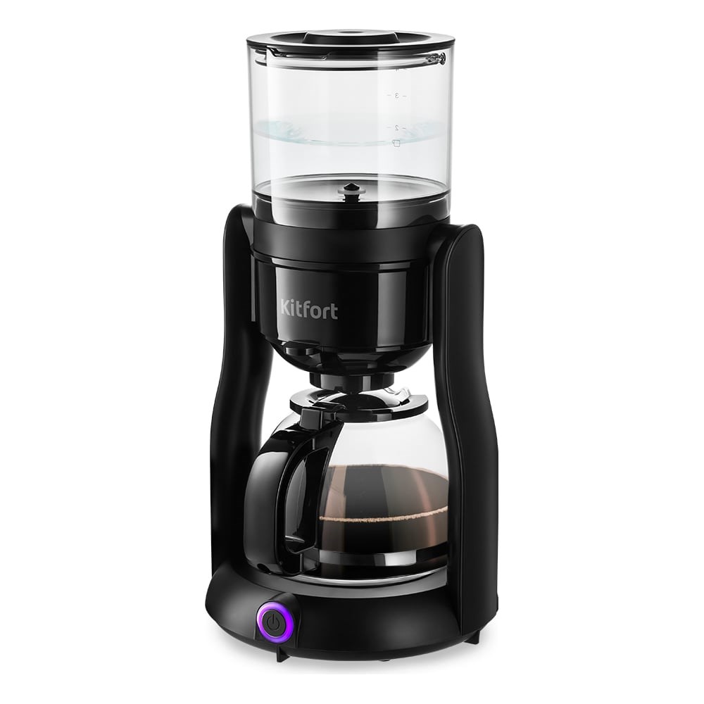 Капельная кофеварка Kitfort КТ-7136 готовит ароматный кофе одним нажатием кнопки. Прибор небольшой по размеру. В капельной кофеварке вода доводится до температуры 80–90 °С, после чего медленно поступает в фильтр с молотым кофе. Пройдя через него, она попадает в кофейник. По окончании приготовления напитка кофеварка перейдет в режим подогрева. Платформа с подогревом, на которой стоит кофейник с готовым кофе, будет горячей в течение 15 минут, затем прибор выключится. Кофеварка оборудована противокапельной системой — затвором, приостанавливающим подачу кофе при вынимании кофейника из прибора. Вы можете налить кофе в чашку, не дожидаясь окончания приготовления. Резервуар для воды емкостью 480 мл позволяет за один раз приготовить кофе на 2 больших (по 250 мл) или 5 маленьких (по 100 мл) чашек. Корпус кофейника прозрачный, поэтому вы всегда можете видеть, сколько кофе еще осталось. Резервуар для воды оснащен мерной шкалой, благодаря которому вы сможете с легкостью приготовить кофе в необходимом количестве. Кофеварка предназначена для приготовления кофе в домашних условиях или в офисе. Устройство полностью разборное и занимает мало места, очень удобно для хранения.