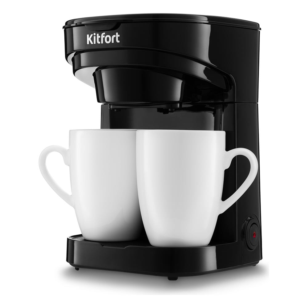 Кофеварка KITFORT КТ-764 поможет приготовить ароматный кофе. Она очень компактная, простая в использовании и идеально подойдёт для приготовления кофе в домашних условиях или в офисе. В комплекте идут 2 керамические кружки ёмкостью 150 мл. Кофеварка управляется всего одной кнопкой, расположенной на корпусе. Оснащена многоразовым нейлоновым фильтром, который удобно мыть после приготовления кофе и использовать снова. В капельной кофеварке вода доводится до 80-90 градусов, после чего медленно поступает в фильтр с молотым кофе. Пройдя через него, она попадает одновременно в 2 кружки через 2 тонких отверстия для точного наливания готового кофе.