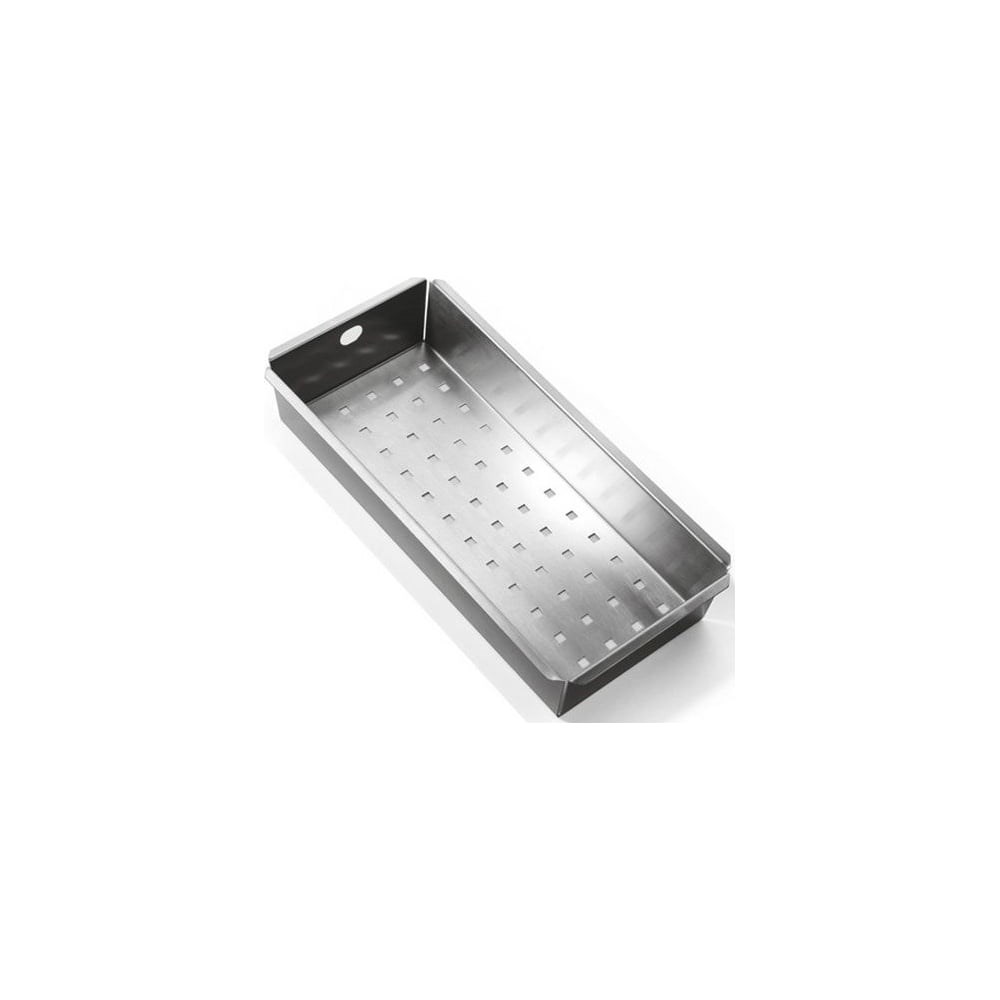 Очень полезный кухонный аксессуар, который повторяет моечную чашу по форме. Если Вы не хотите, чтобы ложки и вилки были разбросаны по всей кухонной мойке, или Вам потребовалось разморозить на водяной бане небольшие продукты – коландер - это то, что Вам нужно! На его дне расположены ряды дырочек, которые не позволяют застояться в коландере воде, поэтому его можно использовать и в качестве дуршлага.К каждой кухонной мойке рекомендуются коландеры определенных размеров - поэтому, выбирая коландер для своей мойки - нужно обязательно обращать внимание на блок рекомендованные аксессуары. Если купить не рекомендованный коландер, он может не подойти к Вашей мойке.