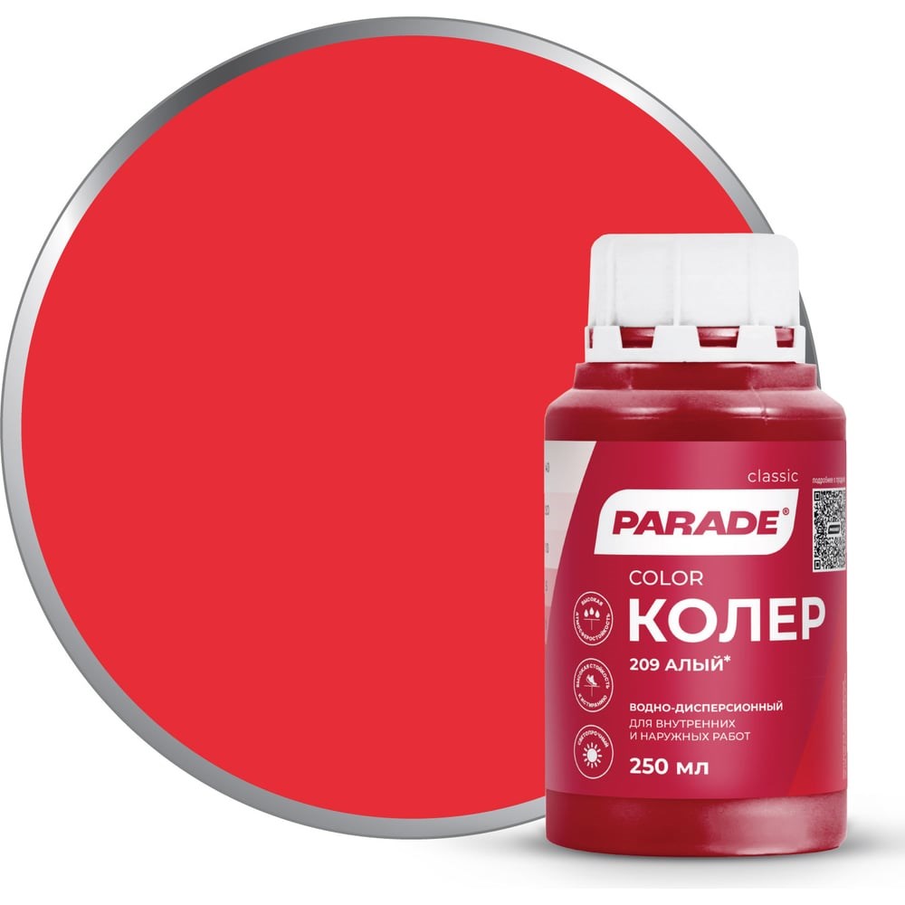 Колер PARADE №209 алый 0,25 л Россия 90001651715 - экологически чистый колер. Предназначен для тонирования всех видов красок, шпатлевок и декоративных штукатурок на водной основе. Для внутренних и наружных работ.