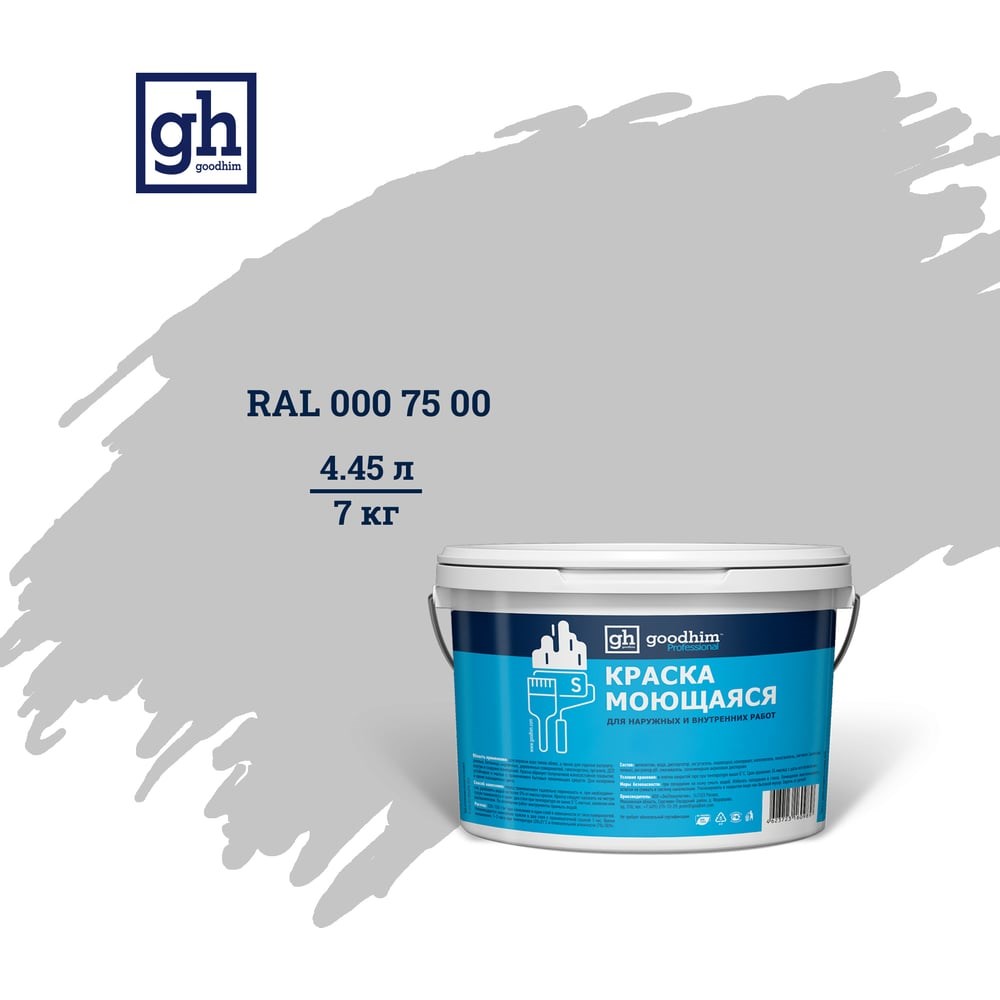 Колерованная краска Goodhim S D2 RAL 000 75 00, моющаяся, водно-дисперсионная, акриловая, 7 кг 53317 предназначена для окраски всех типов обоев, а также для отделки оштукатуренных, бетонных, кирпичных, деревянных поверхностей, гипсокартона, оргалита, ДСП внутри и снаружи помещений. Продукт образует полуматовое износостойкое покрытие, устойчивое к мытью с применением бытовых моющих средств.