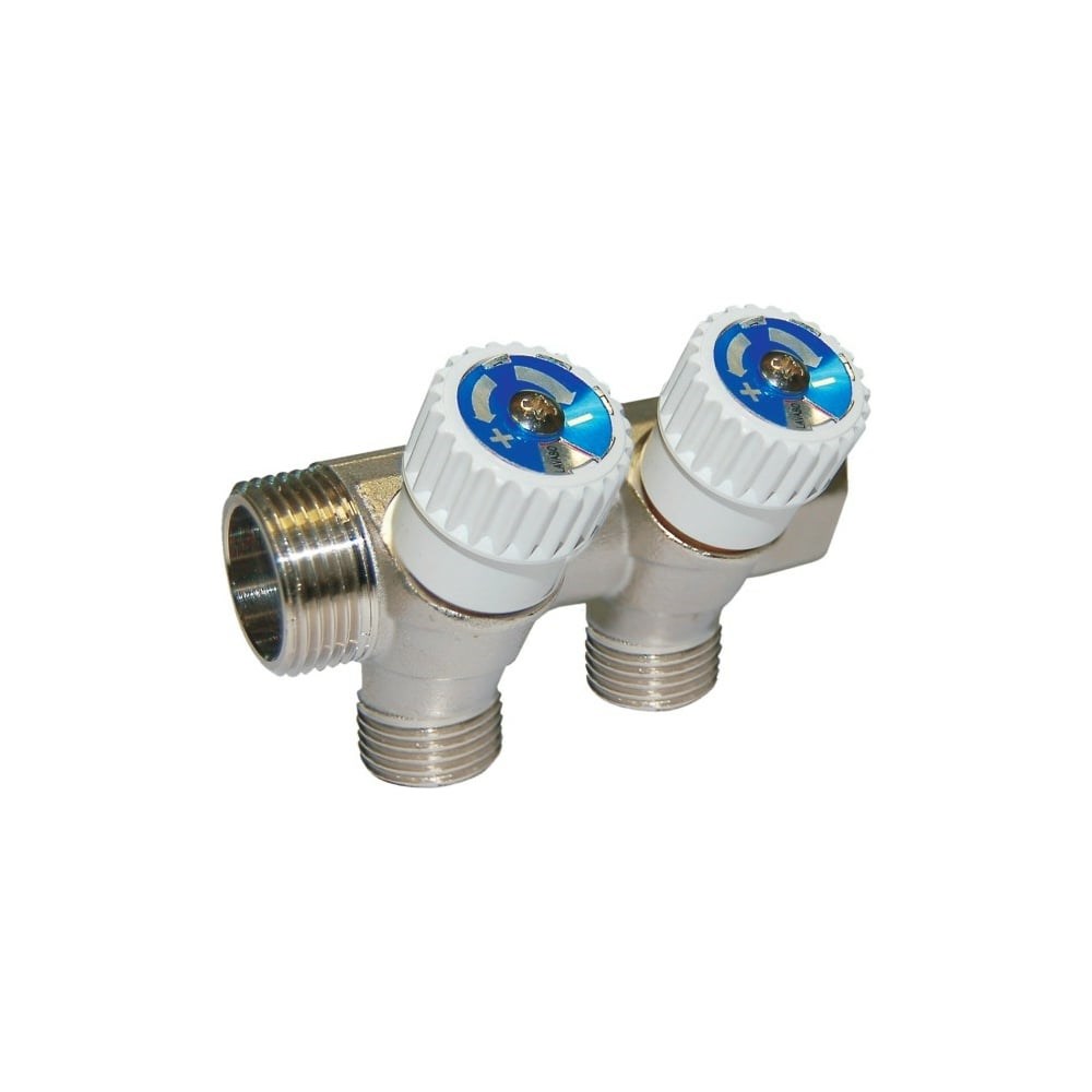 Коллектор с вентилями Comisa 3/4-1/2-2 выхода, никель 8820050 - коллекторная гребенка. Для отопления и водоснабжения. Позволяет регулировать интенсивность потока рабочей среды.