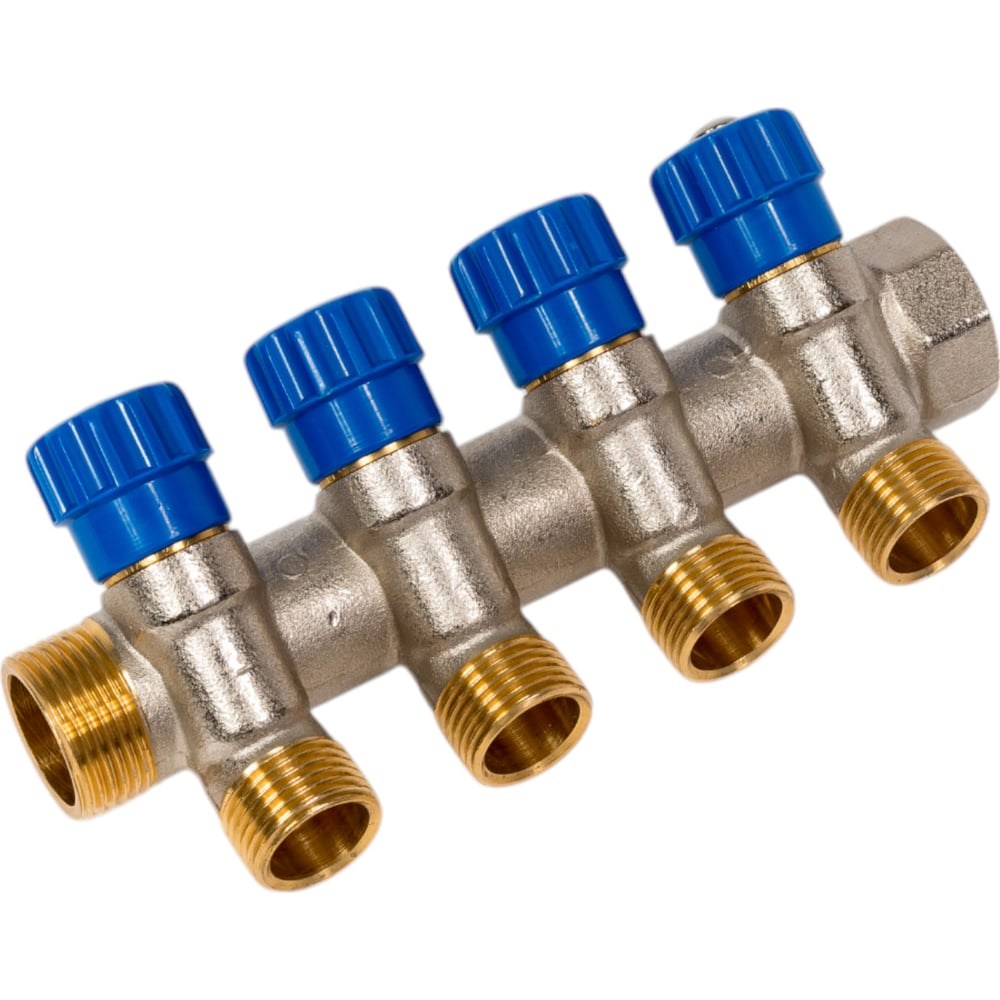 Коллектор с вентильными кранами Imperial 3/4-1/2-4вых. никелированный (Италия) (35мм) 851.04