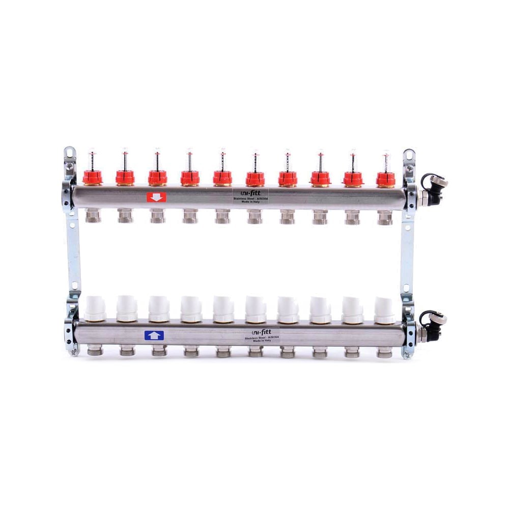 Коллекторная группа 1х3/4, 10 выходов, с расходомерами и термостатическими вентилями, нерж. сталь Uni-Fitt 450I4310