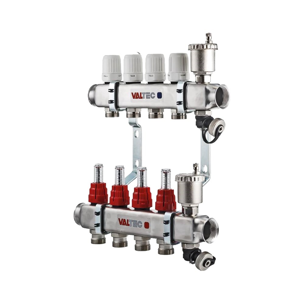 Коллекторная группа Valtec 1x11 выходов евроконус 3/4" нержавеющая сталь со встроенными расходомерами в сборе VTc.586.EMNX.0611