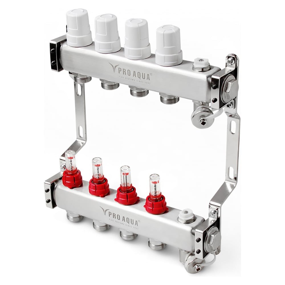 Коллекторный блок с расходомерами PRO AQUA 12 выходов, 680 мм, 1 x 3/4 V500MB.12b - это решение при организации системы отопления в доме, коттедже. С его помощью осуществляется распределение потока теплоносителя систем водяного отопления по потребителям (нагревательным приборам, контурам/петлям теплого пола). Составляющие выполнены из надежных, качественных материалов. Коллекторные группы способны работать как на водяном, так и на гликолевом теплоносителе. Внимание! Изображение товара является условным, при выборе ориентируйтесь на технические характеристики.