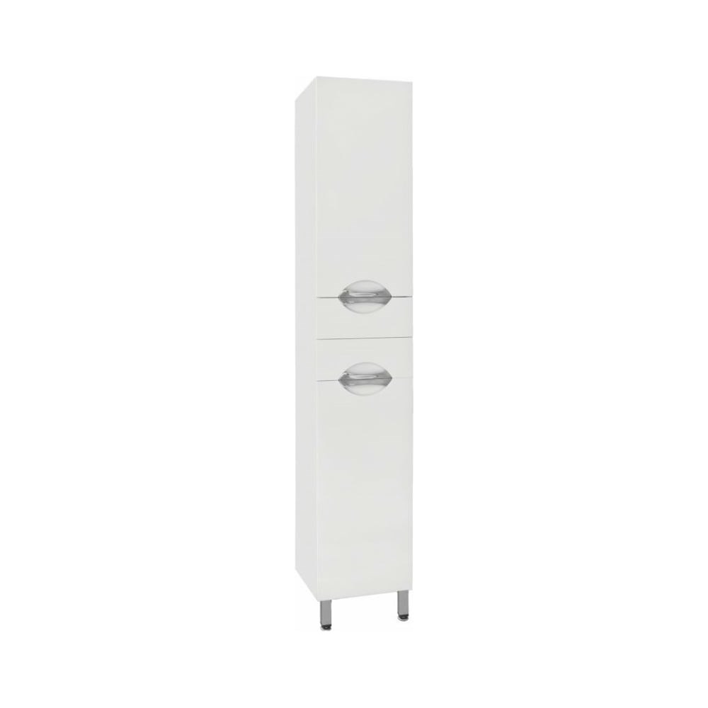 Колонна Style Line Жасмин 360 ЛС-00000045 выполнена в базовом белом цвете и обладает абсолютно гладкими глянцевыми фасадами, оборудованными врезными хромированными ручками. Внутри пенала помещены два центральных выдвижных ящика с механизмом полного выдвижения Hettich и скрытые отделения с полками. Сборка изделия с помощью эксцентриковых стяжек Hafele. Все материалы полностью влагостойкие.