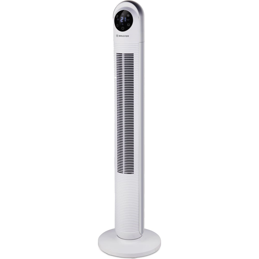 Дополнительные характеристики колонного вентилятора BRAYER мощность 60Вт, LED дисплей, 3 скорости, таймер BR4956: LED-дисплей с индикацией режимов работы. 3 скорости воздушного потока. 3 режима работы: обычный, бриз, ночной . Таймер 1-12ч. Пульт дистанционного управления. Устойчивая конструкция с вращением корпуса на 65°.