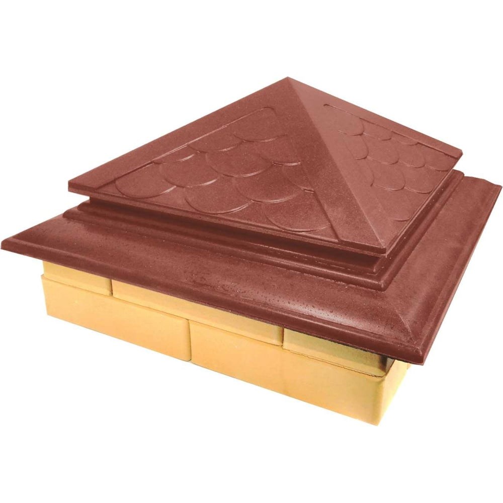 Колпак на столб забора ООО ТК "Титан" Тетто Элит Чешуя (513x513 мм; вишня) 565621ЧВЭ 2х2 кирпича не только придаст столбам Вашего забора эстетичный и гармоничный вид, но и защитит основной материал столба от разрушающего воздействия окружающей среды. Классическая форма, уникальный рисунок и большой выбор цветов идеально подойдут к любому забору, а капельник не даст воде попадать на столбы. С колпаками Tetto Ваш забор будет защищен на долгие годы.