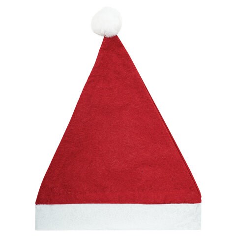 Колпак новогодний размером 30х38 см выполнен в форме треугольника из нетканого полипропилена красного и белого цветов. Сверху колпака имеется помпон белого цвета из полипропилена. Товар c навесной этикеткой.
