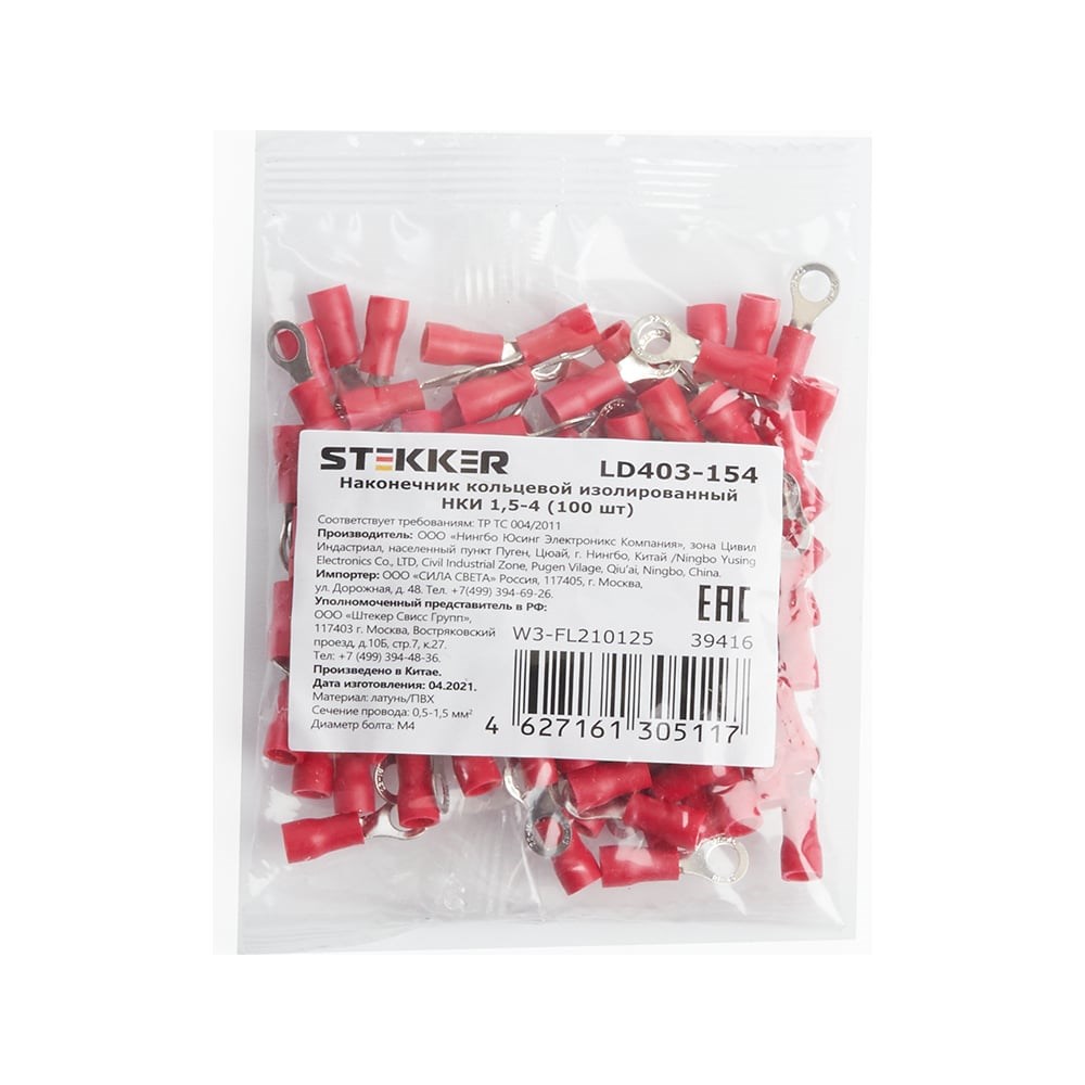 Кольцевой изолированный наконечник STEKKER НКИ 1,5-4, LD403-154 (ОПТ упаковка 100 шт) 39416
