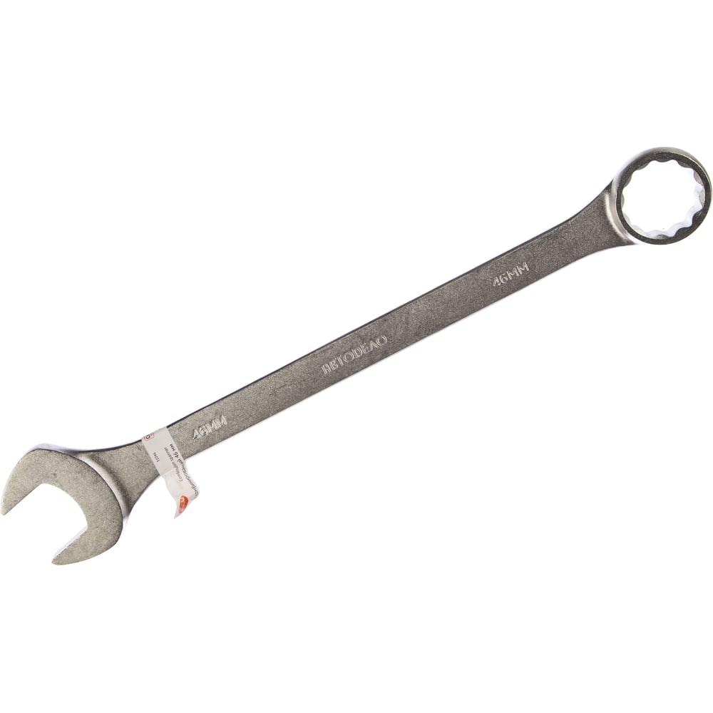 Комбинированный ключ 46х46 АвтоDело 31046 14645 оборудован накидной и рожковой головками. Это позволяет работать с крепежом с боковым и торцевым доступом. Увеличенная ширина основания головок обеспечивает высокую прочность.