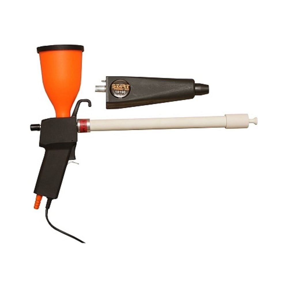 Распылитель START 50 Старт-50-комби 4687202091416 предназначен для нанесения полимерных порошковых покрытий на изделия любой конфигурации из металла, стекла, керамики, и других термостойких материалов. С воронкой и двумя стволами в комплекте – трибостатическим и электростатическим. Позволяет работать как в режиме трибостатики, так и в режиме электростатики в зависимости от поставленных задач и конфигурации изделия.