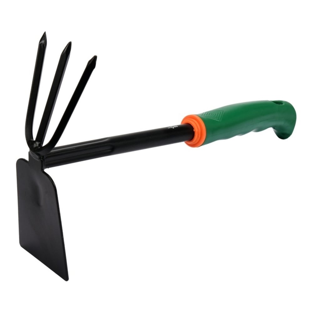 Комбинированный рыхлитель FLO 99037 сочетает в себе мотыгу и рыхлитель для обработки почвы на дачном участке. Надежность. Рабочая часть выполнена из прочного металла для долгого срока службы инструмента. Рукоятка с мягким рельефным покрытием обеспечивает удобство удержания рыхлителя при работе. Для компактного хранения в рукоятке предусмотрено отверстие для подвешивания.