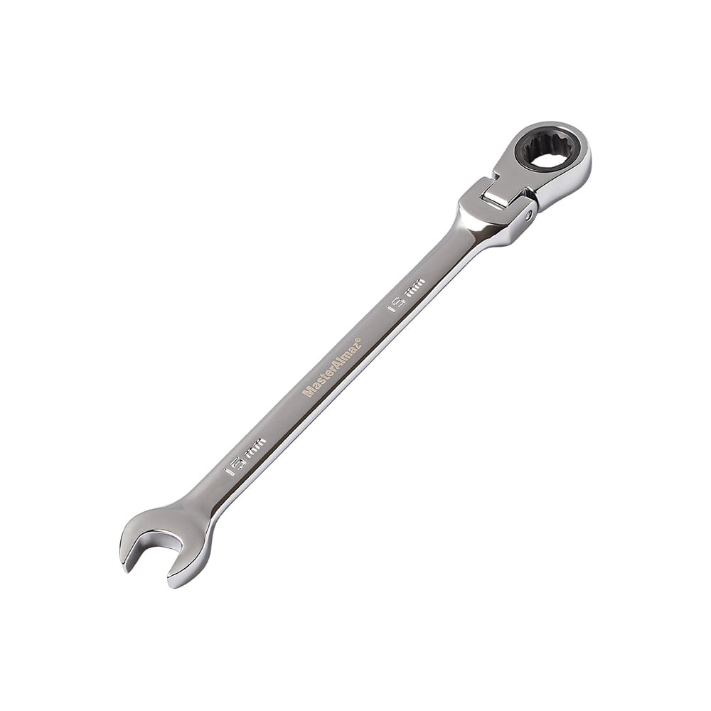 Комбинированный ключ МастерАлмаз трещеточный, с гибкой головкой, 180 град. 15мм 10502923 представляет собой универсальную модель. Изготовлен из хром-ванадиевой стали, с хромированным. Свободное движение накидной головки на 180 град. Трещоточный механизм увеличивает крутящий момент, позволяет работать не перехватывая руки, снижая нагрузку на кисть. Угол срабатывания механизма трещотки 5 град, удобно использовать при ограниченной рабочей зоне. Изделия профессионального качества, подходит для интенсивного применения. Серия профи.