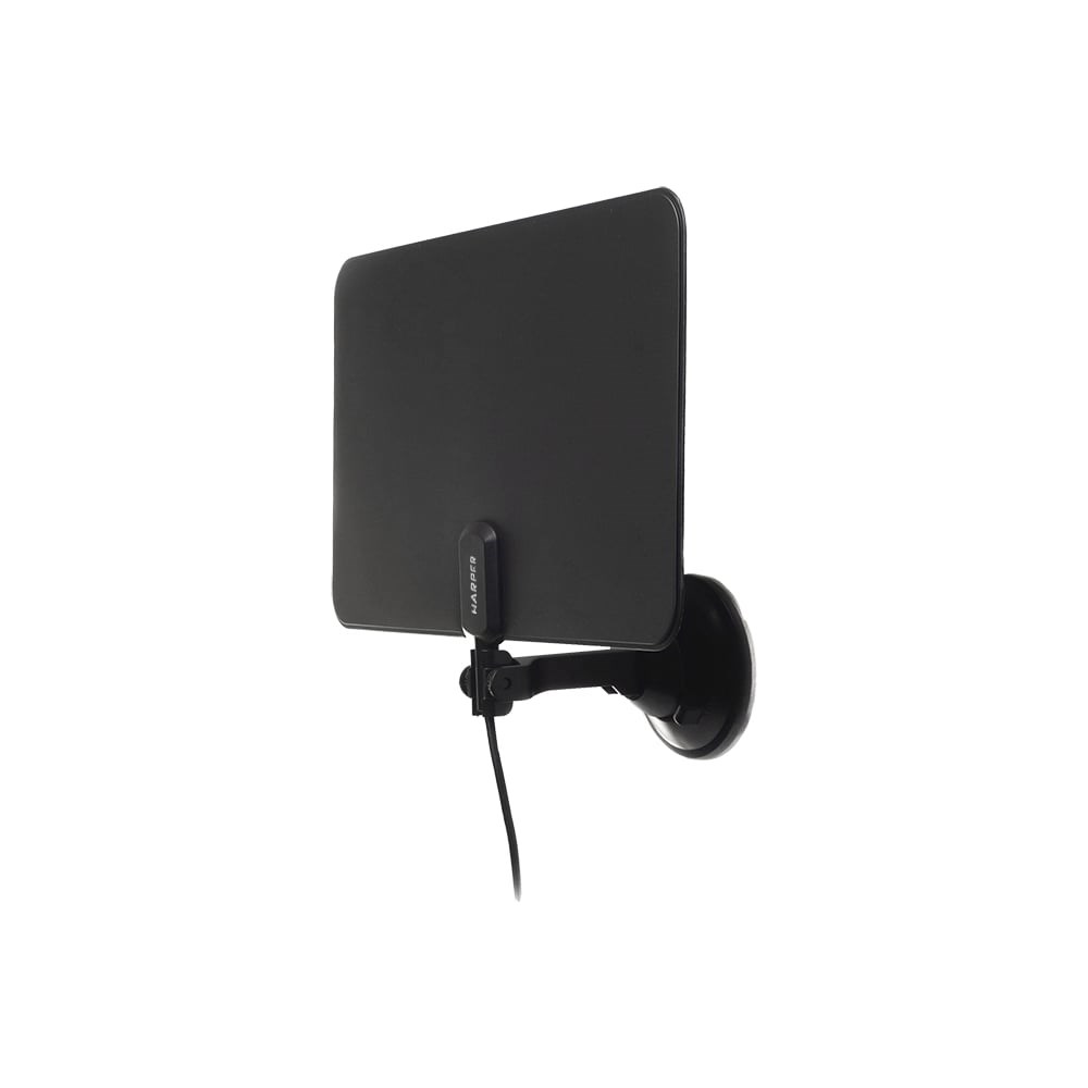 Harper ADVB-2825 – комнатная антенна с активным усилителем. Даже при использовании внутри помещений Harper ADVB-2825 обеспечивает коэффициент усиления 25 дБ. Уровень шума при этом не превышает 3 дБ, а максимальный выходной уровень составляет 100 дБ/мкВ.Антенна легко и быстро монтируется на гладкие поверхности (например, на окно) с помощью специальной присоски на несущем кронштейне. Если подходящей для присоски поверхности в пределах досягаемости нет, Harper ADVB-2825 можно закрепить с помощью двусторонней клейкой ленты на стене, шкафу, полке или на другом основании.Если длины антенного кабеля в 2 метра недостаточно – можно использовать удлинители и переходники. Несущий кронштейн позволяет вращать антенну и изменять угол наклона даже на неподвижном основании.Активный усилитель, поставляемый в комплекте с антенной, может питаться от декодера цифровых каналов (внешнего или встроенного в телевизор), если такая возможность предусмотрена производителем оборудования, или от адаптера, входящего в комплект поставки. Антенна Harper ADVB-2825 выполнена в ультратонком дизайне и отлично сочетается с любой цифровой техникой.