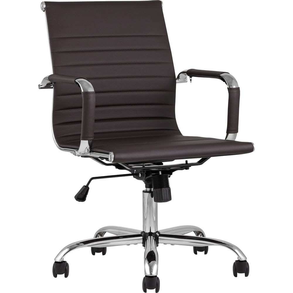 Компьютерное кресло Стул Груп TopChairs City S, коричневое D-101 brown предназначено для работы за компьютером. Благодаря механизму регулировки высоты и качания можно выбрать удобное положение. За счет прочного каркаса выдерживает большую нагрузку. Кресло легко чистится, поэтому не требует сложного ухода.