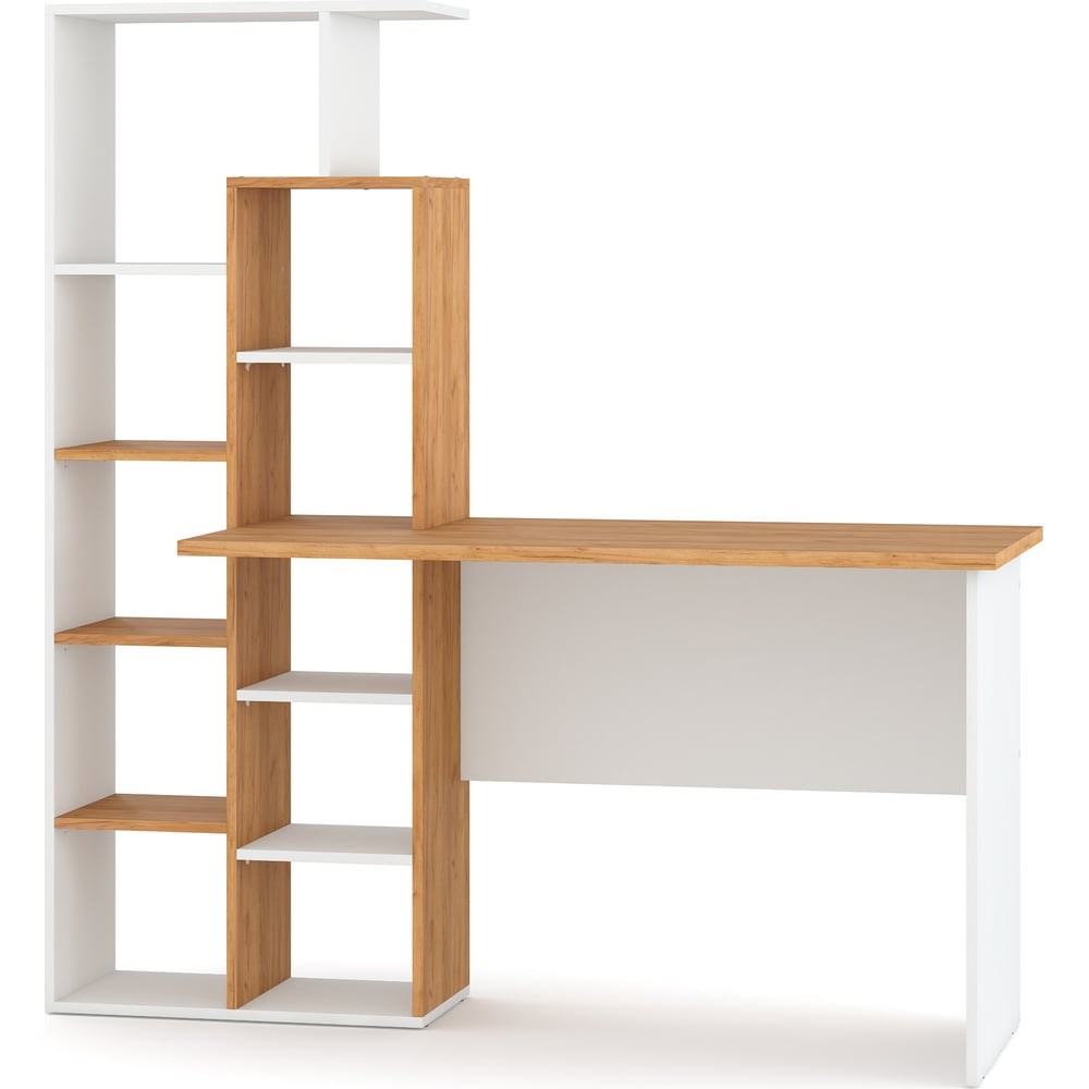 Компьютерный стол Атмосфера Вентура дуб крафт золотой/белый 00-00000643 предназначен для дома или офиса. Широкая столешница позволяет удобно разместить различные вещи. Легко чистится, что экономит время и силы. Эстетичный дизайн стола украсит любой интерьер.