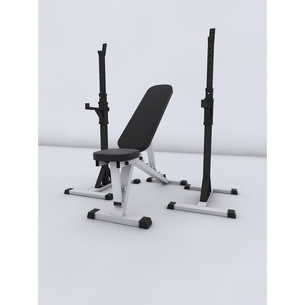 Стойка для штанги Тренажер со свободными весами позволяет выполнять широкий спектр упражнений со штангой: приседания, жим и другие. Две отдельные стойки под штангу позволяют установить их на любом удобном расстоянии друг от друга. Держатели под штангу регулируются по высоте в диапазоне от 87 до 157.5 см. 15 уровней с шагом 5 см. Страховочные держатели под штангу шириной 17 см можно установить на высоте от 48 до 71 см. 6 уровней с шагом 5 см. Рама стойки изготовлена из высококачественного стального профиля. Размер 50х50 мм. Порошковая покраска рамы. Резиновые ножки для надежной установки на полу. Не царапают поверхность. Скамья для жима Скамья для жима лежа - это спортивное оборудование, которое напоминает обычную скамью, созданную для использования в силовом тренинге с целью тренировки главным образом грудных мышц и трицепсов. Данный тренажер незаменим для комплексной тренировки мышц спины, груди и рук, но также может использоваться для проработки пресса, ягодиц и ног.