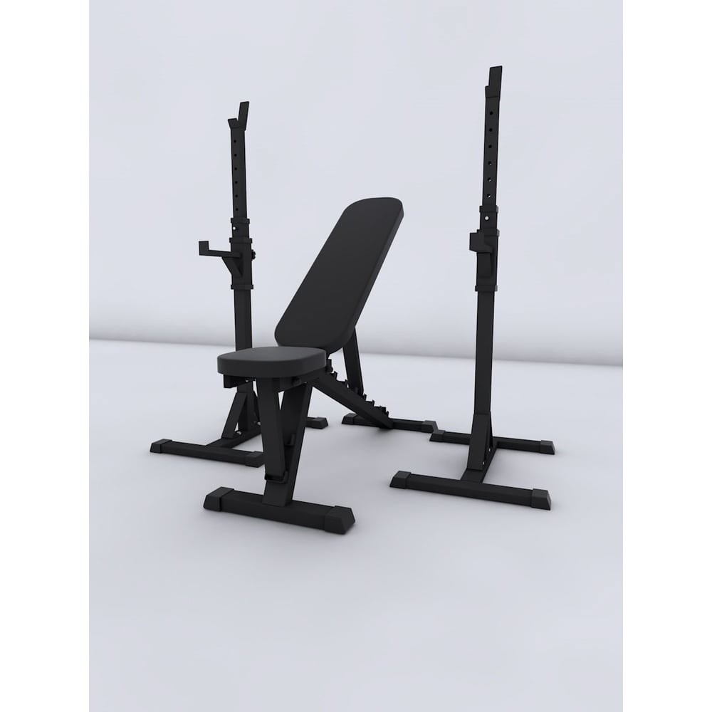 Стойка для штанги Тренажер со свободными весами позволяет выполнять широкий спектр упражнений со штангой: приседания, жим и другие. Две отдельные стойки под штангу позволяют установить их на любом удобном расстоянии друг от друга. Держатели под штангу регулируются по высоте в диапазоне от 87 до 157.5 см. 15 уровней с шагом 5 см. Страховочные держатели под штангу шириной 17 см можно установить на высоте от 48 до 71 см. 6 уровней с шагом 5 см. Рама стойки изготовлена из высококачественного стального профиля. Размер 50х50 мм. Порошковая покраска рамы. Резиновые ножки для надежной установки на полу. Не царапают поверхность. Скамья для жима Скамья для жима лежа - это спортивное оборудование, которое напоминает обычную скамью, созданную для использования в силовом тренинге с целью тренировки главным образом грудных мышц и трицепсов. Данный тренажер незаменим для комплексной тренировки мышц спины, груди и рук, но также может использоваться для проработки пресса, ягодиц и ног.