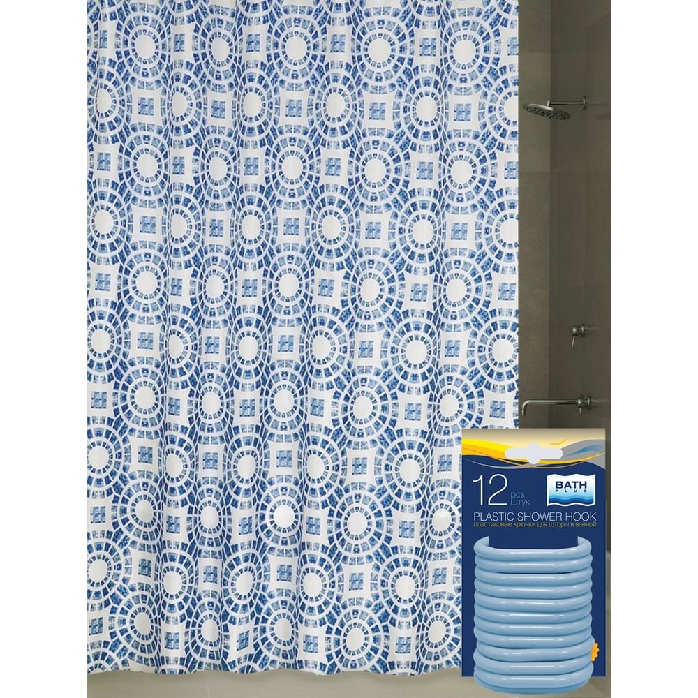 Комплект: штора для ванной и кольца Bath Plus Circle Blue akch15080 - штора сделана из 100% полиэстера, имеет водоотталкивающую пропитку, благодаря этому изделие долговечно и не требует особого ухода. Плотность шторки - 80 г на кв.м. Изделие можно стирать в стиральной машине при 30 градусов С на деликатном режиме и гладить. Данная штора также прекрасно подойдет в качестве занавески для душевой кабины.